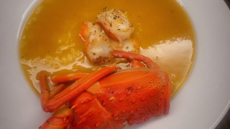 18. 虾肉用黄油炒赤黄,加黑胡椒,盐巴,