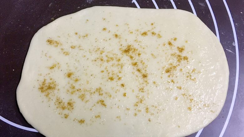 9. 用擀面杖轻轻擀一下,使芝麻与面片粘合