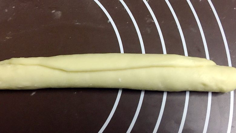 13. 将接缝处捏拢后的卷,在面板上来回轻轻滚搓