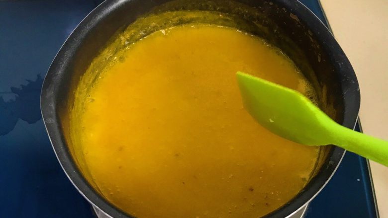 12. 南瓜米糊倒进锅里,大火煮开转小火