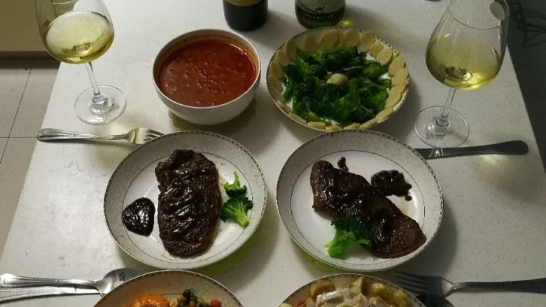 4. 按我喜欢的方式装盘,配白葡萄酒和闺蜜做的牛排,以及其他美食,共同享用。只要和你喜欢一起呆的人在一起,自然会做出不一样的美味。吃什么都好吃。😙