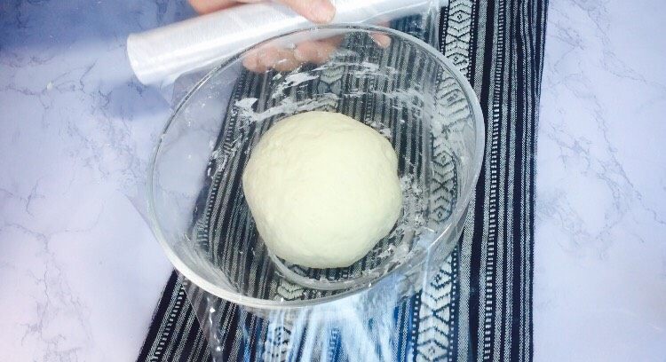 3. 盖保鲜膜室温发酵一倍大,做花样需要时间,所以第一次发酵只需一倍!