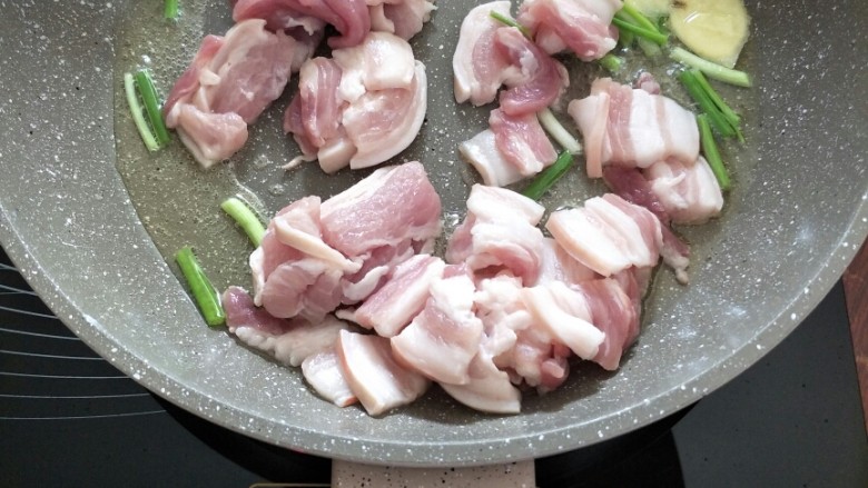 14. 翻炒均匀之后的五花肉,是不是很诱人😍😍;