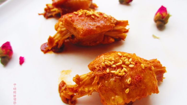 4. 将金针菇塞进鸡翅里,不要塞过满