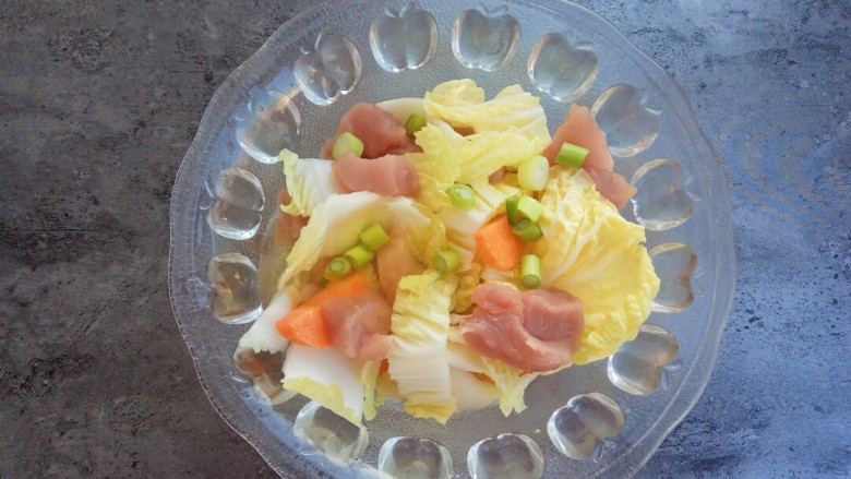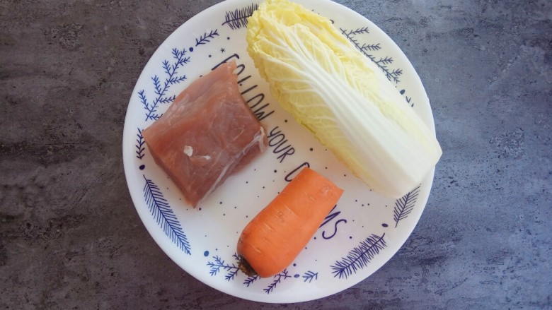 5. 里脊肉、娃娃菜、胡萝卜切好备用