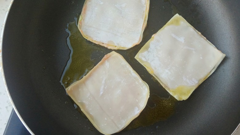 18. 锅里入油,放入馄饨肉饼