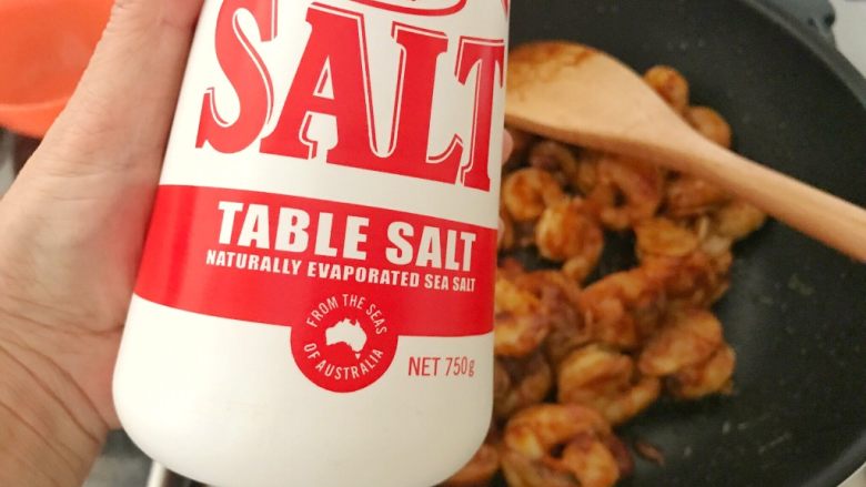 2. 首先我们把虾仁腌制一下:加入少许盐,