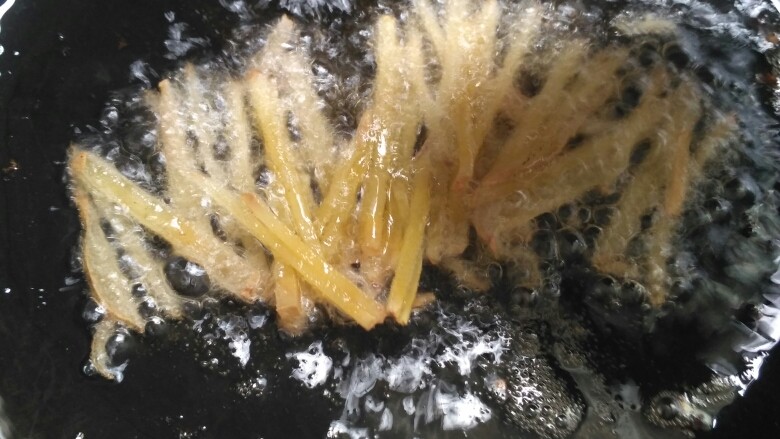 4. 热锅热油,放姜丝略炒出香味。