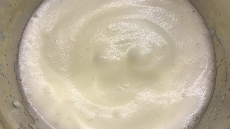 11. 用电动打蛋器打至粗泡状,加入三分之一白糖