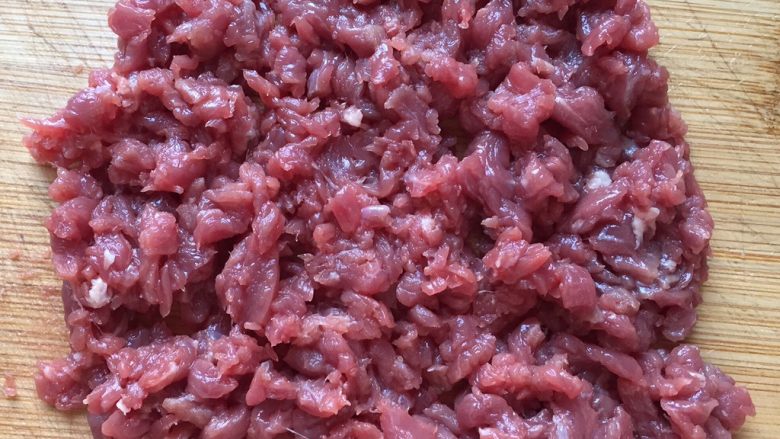 5. 在腌制牛肉末的时候,先把胡萝卜去皮洗净剁成末备用。