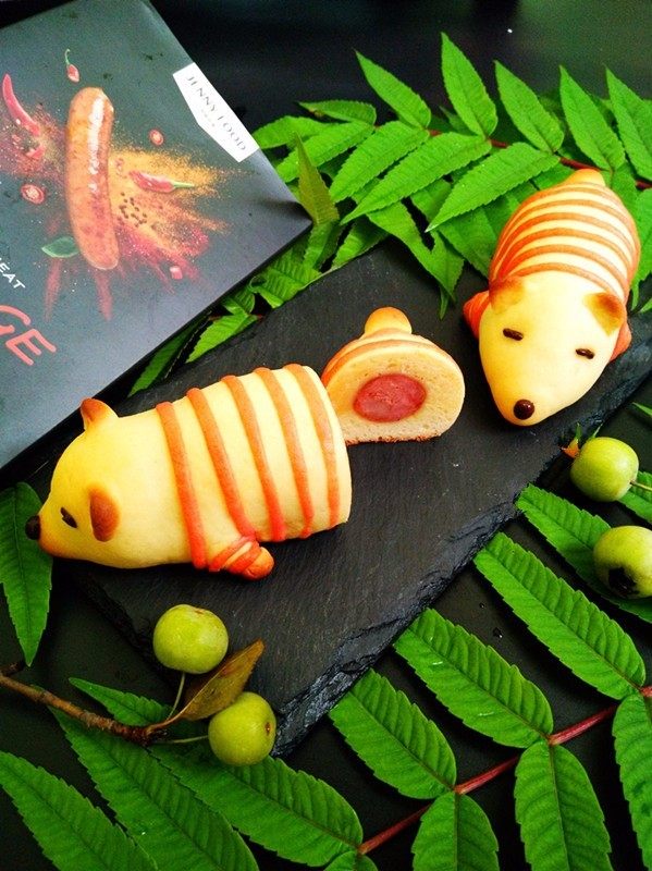 憨态可掬的暖暖熊总是给人温暖的感觉,呆萌的小模样人见人爱。胖嘟嘟的身体穿着一件粉红的衣服,好可爱哟!这次做的是一个咸甜口味的烧果子,里面包入珍妮珍馐鲜肉香肠,咬上一口,绵软Q弹。口感丰富!虽然这么可爱还是忍不住咬下第二口,谁让它这么好吃呢,嘻嘻~~