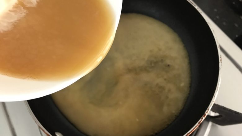 13. 热锅,把生粉倒进去搅拌煮开成芡汁
