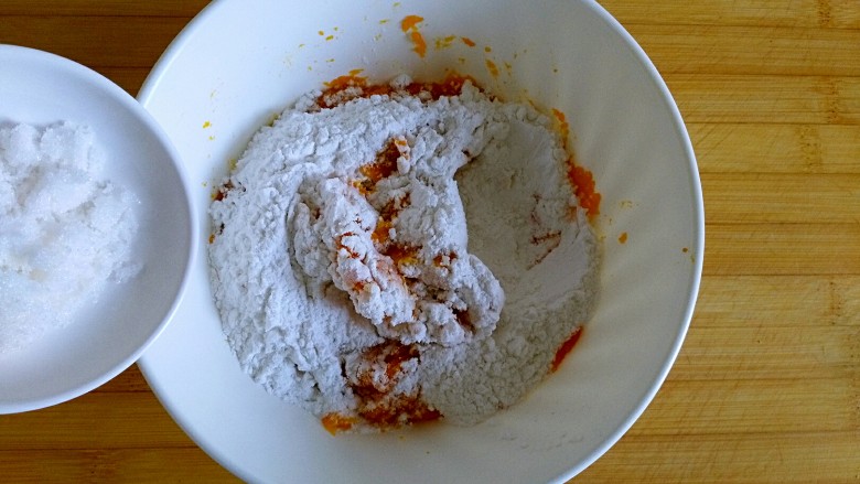 20. 一份为例 取一个南瓜面团压扁包入枣泥酱用虎口收紧滚圆