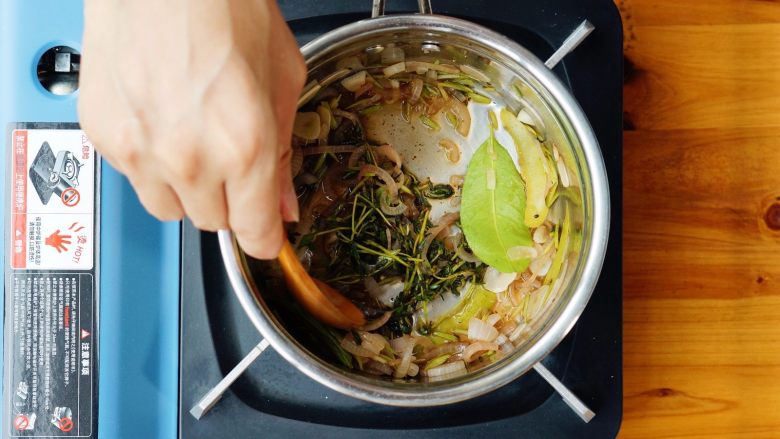 6. 待水烧开后,加入1/3的盐和1/4个的柠檬汁后,熄火。