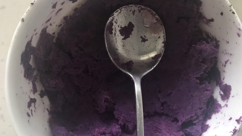 1. 紫薯切片,放在锅里用水蒸,大约20分钟,拿出来在大碗里面用勺子搅拌碎。