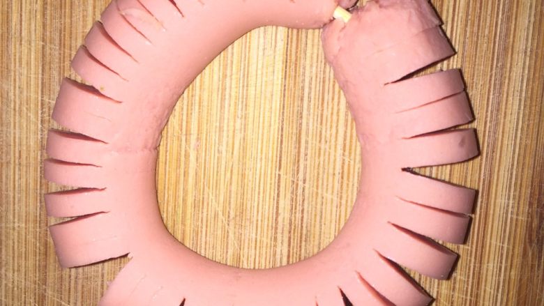 2. 把火腿肠一切为二