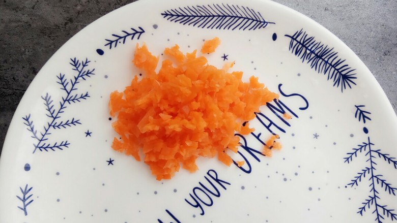 9. 放入胡萝卜碎、海苔碎、菠菜碎搅拌均匀