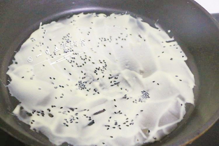 7. 小火,然后快速用刮板刮开,尽量薄。