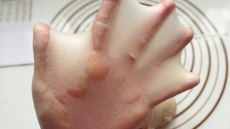 13. 13.松弛好的面团,中间按压,擀成面皮