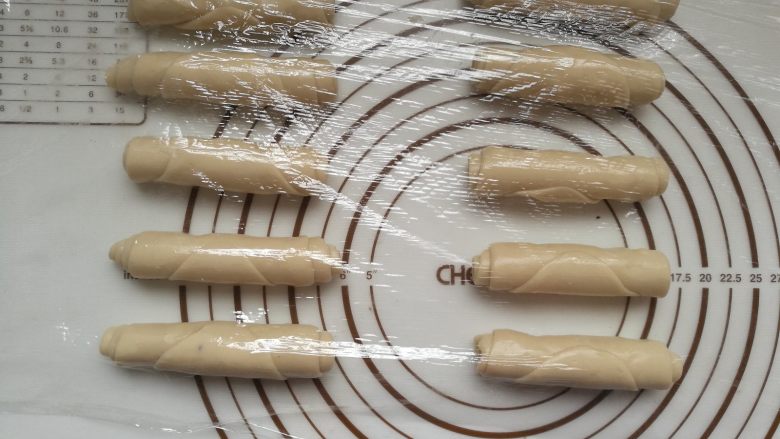 9. 9.然后卷起来用保鲜膜盖着静置松弛20分钟