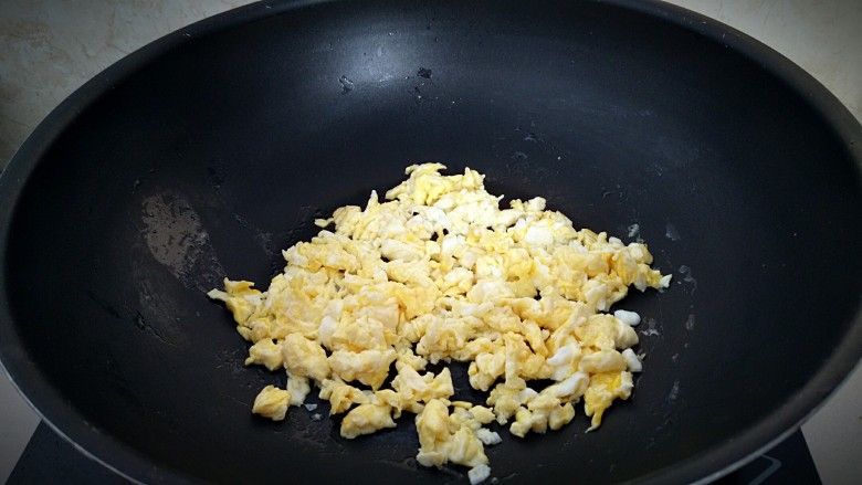 13. 锅中放入适量油,炒散鸡蛋备用。