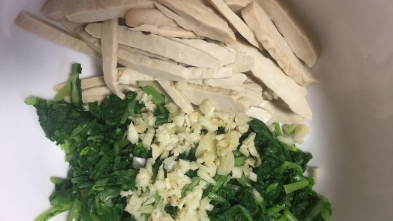 5. 锅里水烧开放进萝卜缨子烫一下马上捞出来。