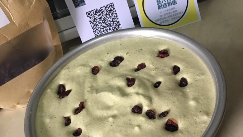 8. 现在需要加入蔓越莓干的可以加入到里面,轻轻搅拌一下,然后将模具轻轻晃荡几下,排除空气