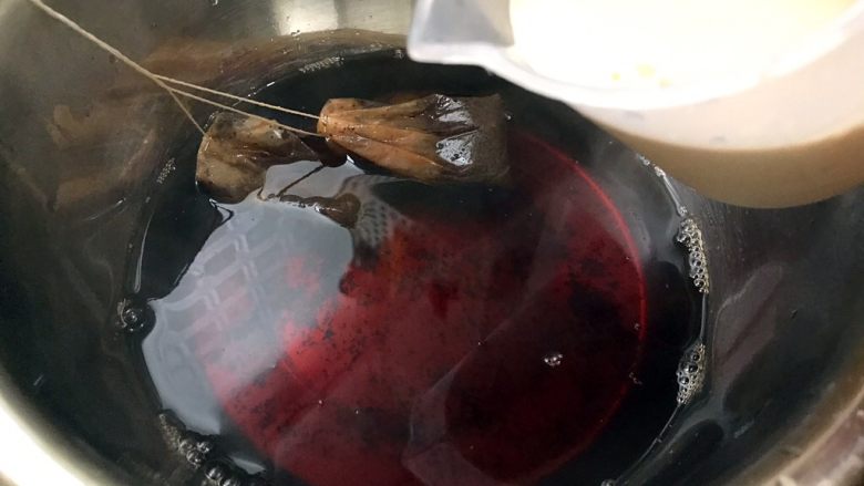 5. 茶水颜色慢慢变浓,用搅拌棒搅拌至糖溶化