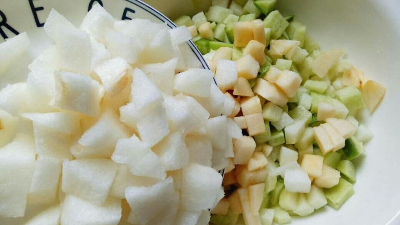 5. 苹果去皮,去核,切丁,备用。