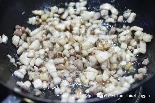6. 把油脂炒出来。如果练出来的猪油太多撇出去些。