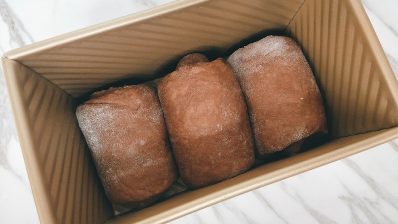 14. 烤箱放热水,放入吐司盒,二次发酵至面团到吐司盒的8~9分满。