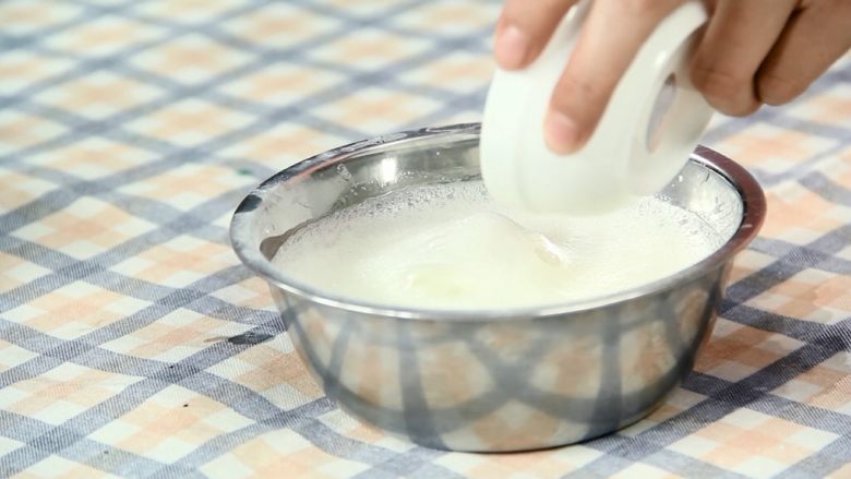 8. 打发蛋白:蛋白里加入10g塔塔粉,打发均匀
