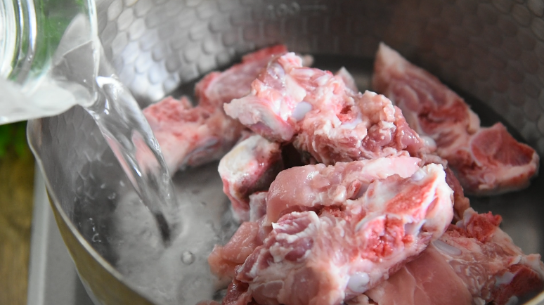 2. 小排用清水浸泡,泡去多余杂质、血丝