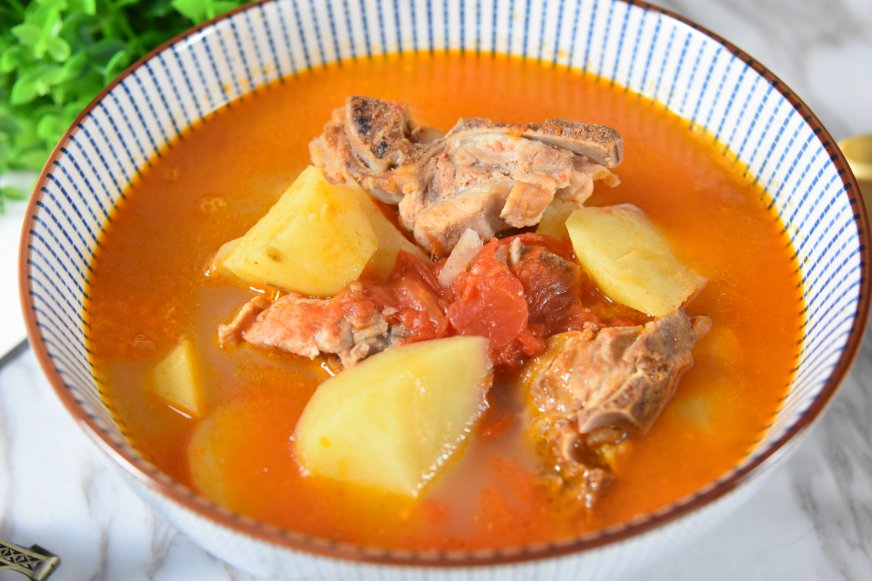 ★★★★★ 小圆食记 Menu 番茄土豆都是营养丰富,美味可口的食材,番茄和土豆都有通便排毒养颜的功效,并且酸甜适口,生津开胃健脾消食。 与猪排骨一起煲汤能让蛋白质和维生素有效结合,是补充骨胶原和钙质,滋养身体的健康汤品。 ★★★★★ 创意指数 番茄土豆小排汤
