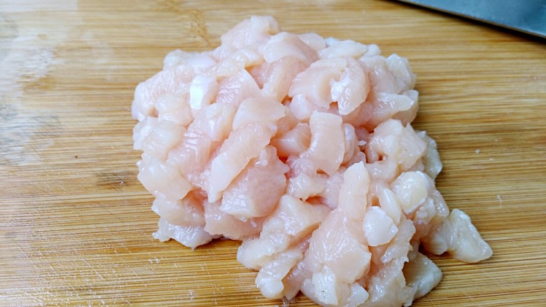 2. 鸡胸肉切成小丁。
