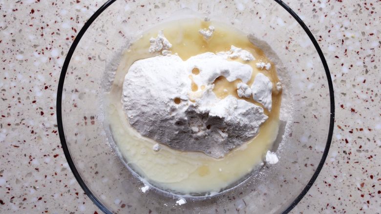 5. 加入色拉油,牛奶混合液; PS:液体少量多次加入;