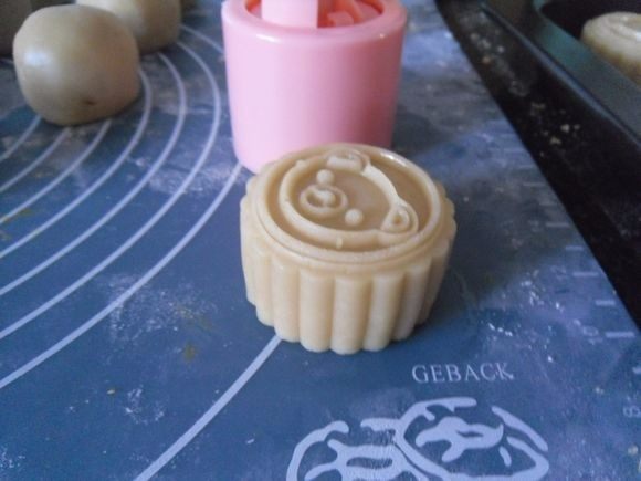 5. 把南瓜蓉馅料分割团圆,每个30克