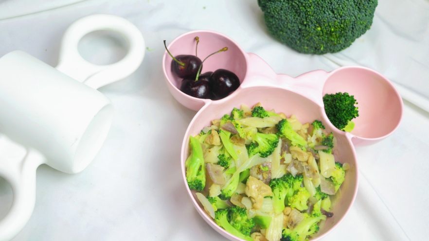 4. 烧开水,将西兰花焯熟,滚水中约2分钟,然后捞起放入冷水中,温度降下来了,沥干。 🌻小贴士:放入冷水中降温能使西兰花保持翠绿的颜色。