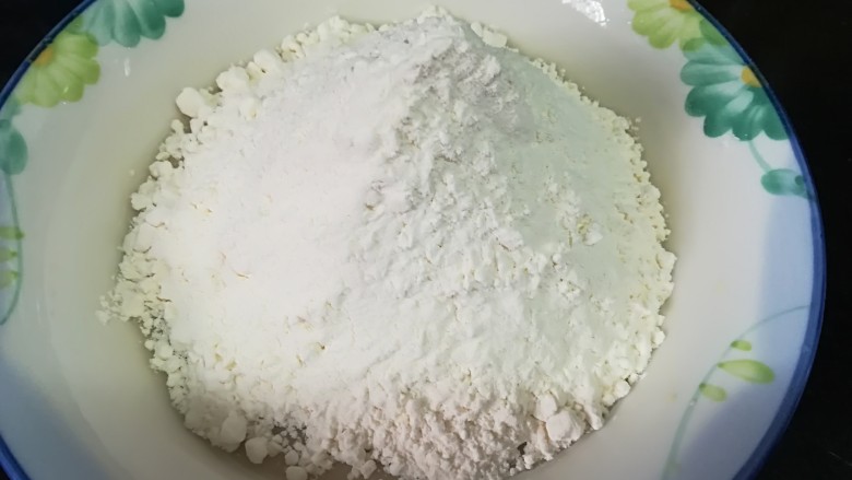 4. 面粉铺在烤盘上,放入烤箱中层,150度烘烤至微微泛黄结块即可,如图所示