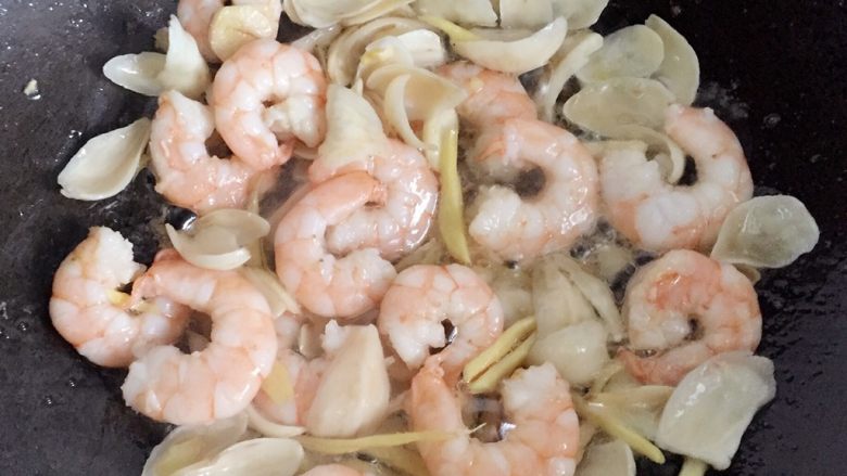 9. 放入虾仁大火翻炒