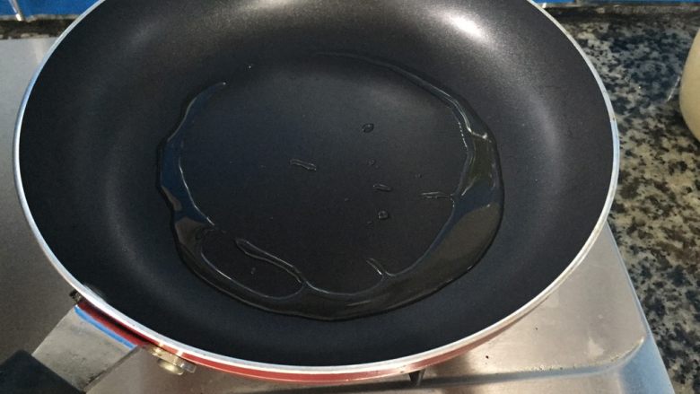 14. 等油热一下后,就用汤勺把准备好的蛋粉糊慢慢的捣在锅上