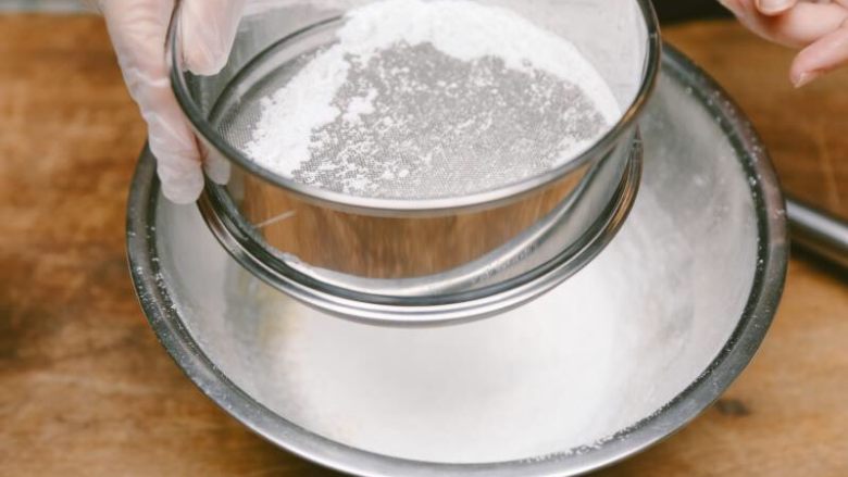 6. 粳米粉过筛,加入打好的蛋黄中