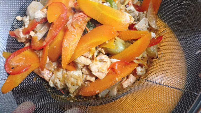 8. 另起一锅,炒蔬菜片。