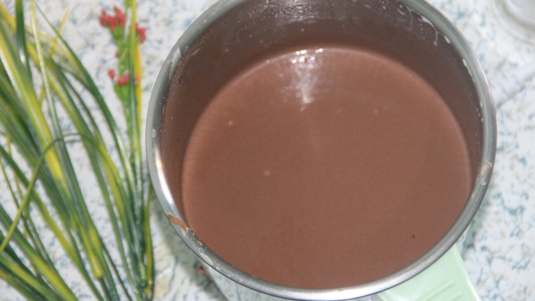 14. 用刮刀不停的搅拌,以免巧克力豆糊锅底