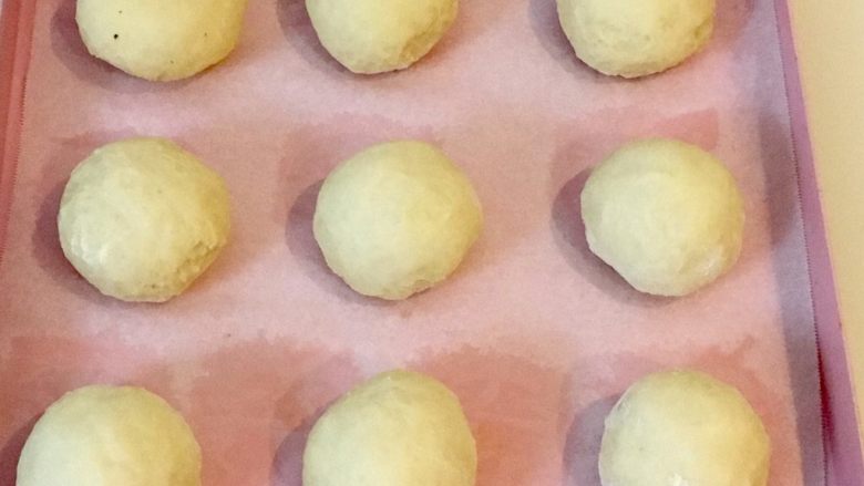 6. 平分成12个,揉圆,盖保鲜膜醒一下。