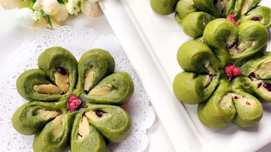 绿色食材总会令人增添食欲,用抹茶粉做面包,搭上黄色的奶酥馅,很漂亮啊!