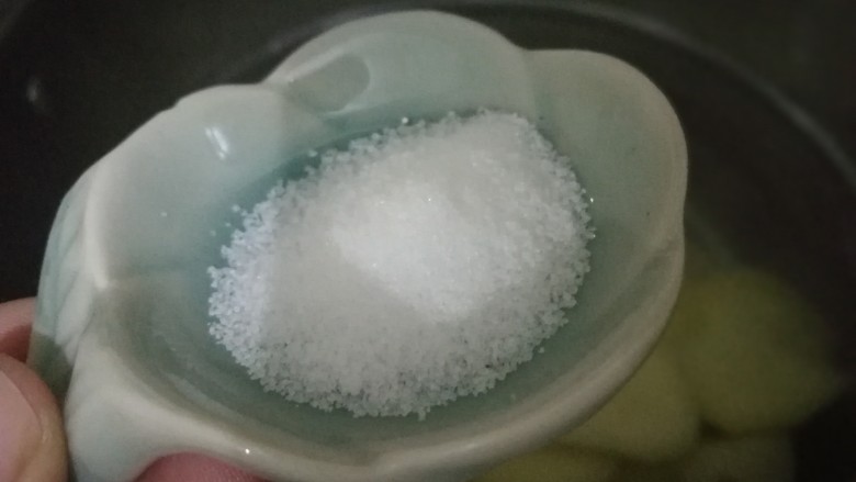 2. 锅中水烧滚后,放入土豆块,再把盐放进去,开始煮。这里放盐是为了入味。