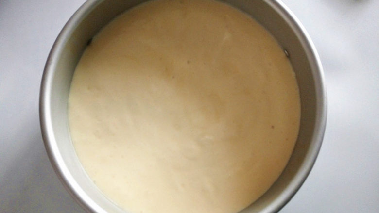 7. 倒入八寸阳模中,轻震几次,震出大气泡,