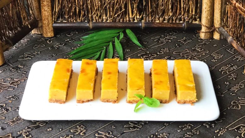 20. 把红薯泥倒在饼干底上,用硅胶刀刮平