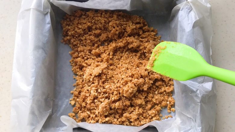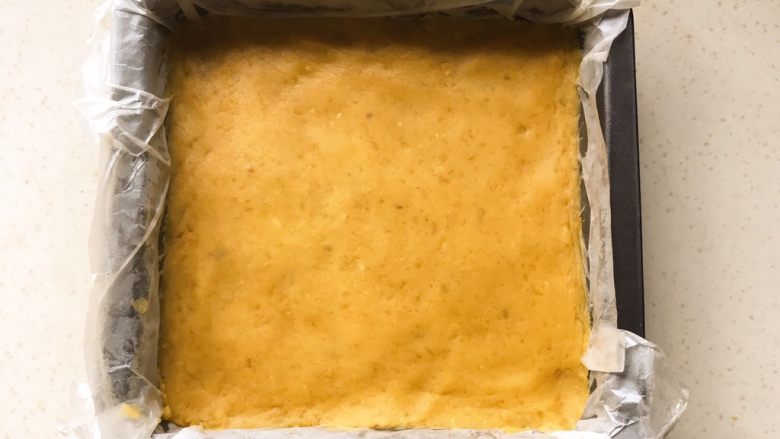 10. 倒进一个垫好油纸的20✖️20的方形烤盘里